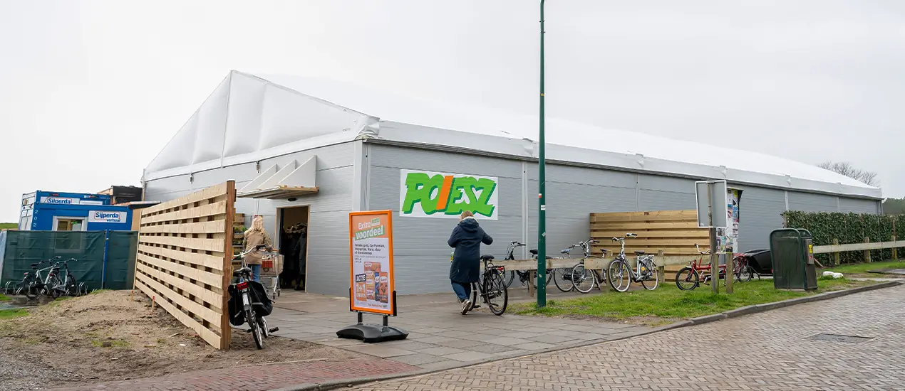 The A-framed full-span building’s spacious, unobstructed interior and sturdy structure make it ideal for a variety of events and uses. Such as weddings and festivals, trade shows, temporary storage, and emergency shelters. The modular design makes them suitable for both short-term and semi-permanent uses.